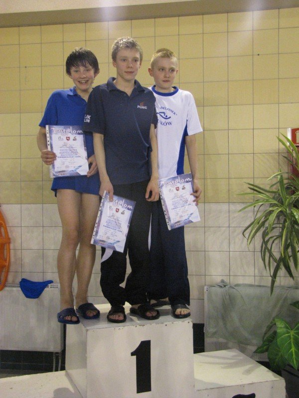 Największy wkład w sukces drużyny mieli Adrian Misiarz i Patrycja Kościk. Adrian trzykrotnie stawał na podium. Na 100(1:19.06) i 200(2:51.74) metrów stylem klasycznym stawał na drugim miejscu podium przegrywając tylko z ubiegłorocznym medalistą MP świetnym Jakubem Kubisiem(Orlik Lublin). Na trzecim miejscu uplasował się na 200 zmiennym z czasem 2:35.69. Bardzo dobrze zaprezentowała się Patrycja na 100 grzbietem(1:12.85), która tylko o 0,5 sekundy przegrała z ubiegłoroczną Mistrzynią Polski w grzbiecie Karoliną Jacniacką z Fali. Na dystansie dwukrotnie dłuższym również trzeba było uznać wyższość rywalki. W roczniku młodszym udanie wystartowała Natalia Mizak zajmując trzecie miejsce na 200 m. st. grzbietowym z dobrym czasem 2:53.72. To, że mocną mamy drużynę nasi potwierdzili w sztafecie zajmując drugie miejsce na 4x50 metrów stylem zmiennym(Kościk, Konopka, Misiarz, Jakóbik).