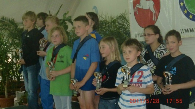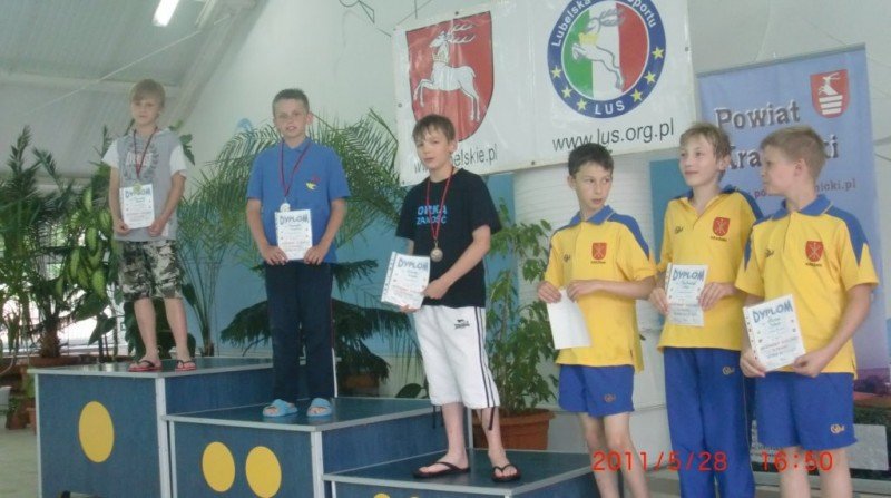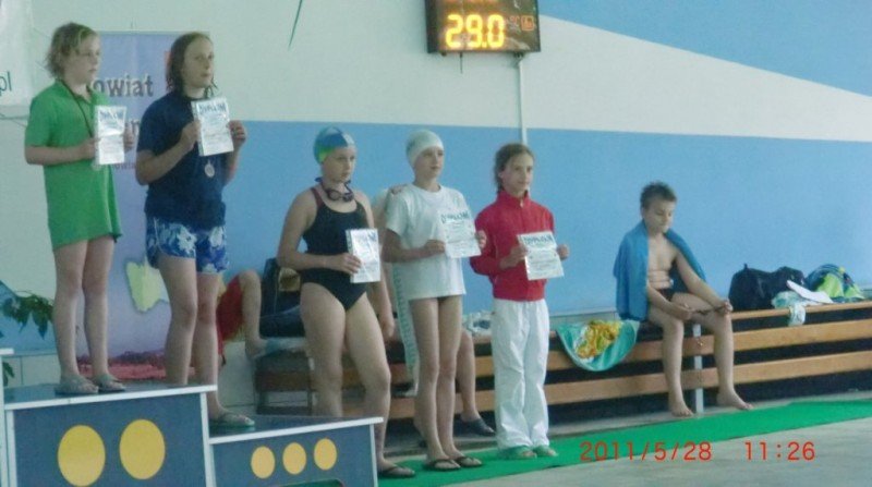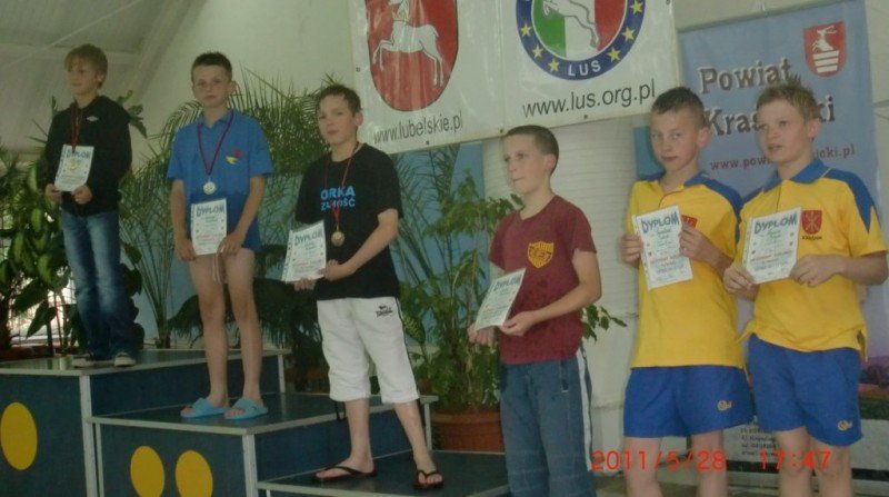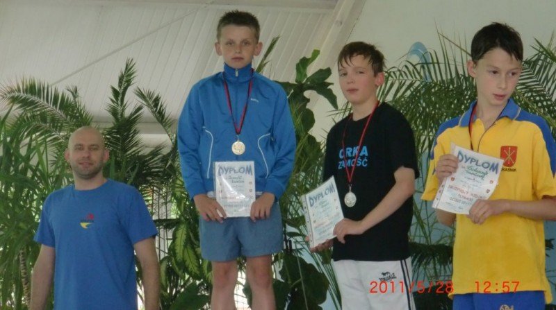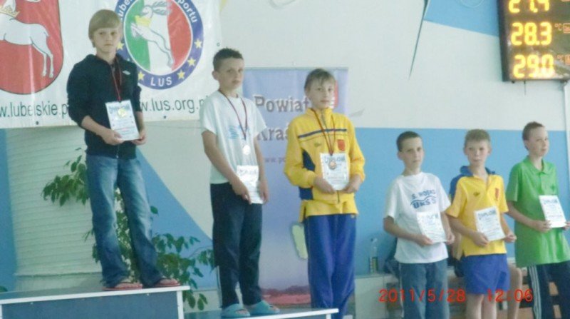 Wśród 11-latków świetnie spisał się Damian Zarzycki. Drużynowo jego rocznik zajął dopiero 6 miejsce, ale trzeba zaznaczyć, że skład drużyny uzupełniało tylko dwoje pływaków: Marcelina Struk i Janek Wołoszyn. Na cztery starty Damian wygrał 200 metrów stylem dowolnym(1:28.78) oraz trzykrotnie stawał na drugim miejscu podium na 100 grzbietem(1:16.78), 100 dowolnym(1:08.13), 200 zmiennym(2:50.24). Pierwsze trzy wyniki plasują się w pierwszej piątce najlepszych w kraju w tej kategorii wiekowej. Czekamy na końcowe zestawienie wyników z całego kraju.
