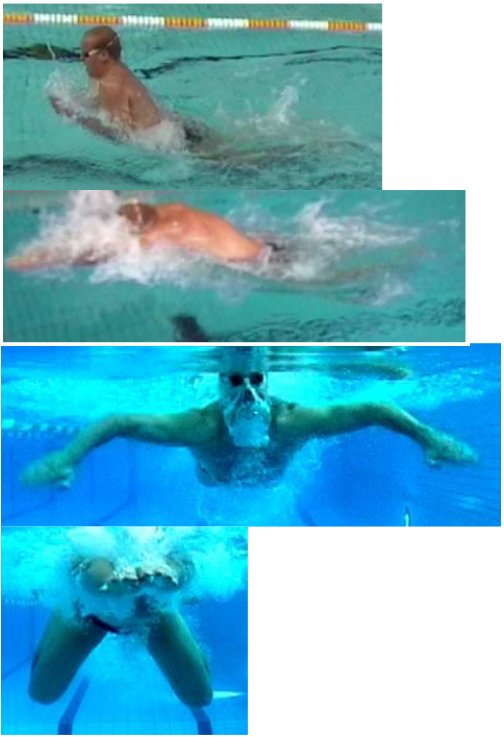 - pamiętaj, że głowa musi „złamać” linię wody zanim dłonie rozpoczną ruch do środka