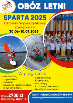 Gorąco zapraszamy na kolejną wakacyjną przygodę ze Sparta! Nasz obóz odbędzie sie po raz kolejny w pięknym Ośrodku Zagłebocze. Zabawa gwarantowana!