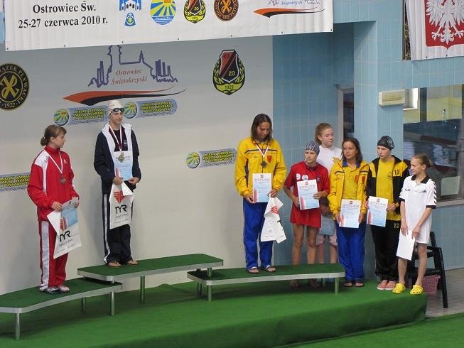 Dużym sukcesem dla naszych młodych sportowców był sam fakt zakwalifikowania się do Mistrzostw Polski. Celem wyjazdu do Ostrowca było zdobycie doświadczenia i przeżycie atmosfery tej rangi zawodów. Nasi pływacy liczyli na udane strarty i znaczne poprawienie rekordów życiowych. Każdego dnia odbywały się kawlifikację do popołudniowych finałów. Mimo dobrych startów nasi się w nich nie zanleźli. Ostatecznie Adrian zajął najlepsze 25 miejsce na 100 metrów stylem zmiennym a Patrycja 31 na 100 stylem motylkowym. Na pewno udział naszych pływaków w takiej imprezie zmotywuje wszystkich do dalszych systematycznych treningów.