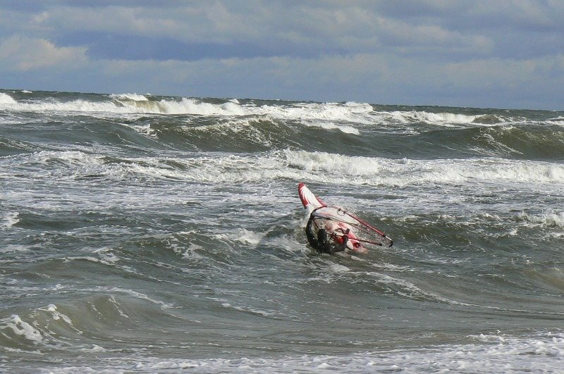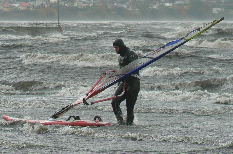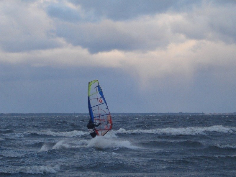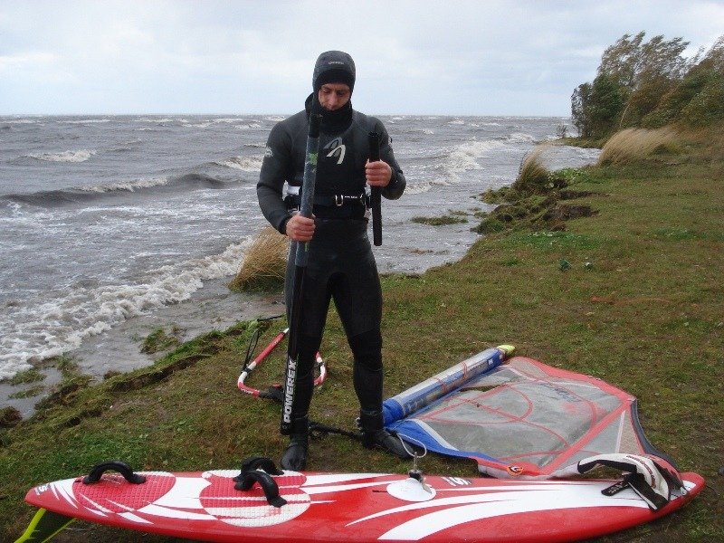 W dniach 13-14 października 2009r instruktorzy "Spartasurf" wybrali się nad Zatokę Pucką. Na Bałtyku szalał sztorm (prędkość wiatru dochodziła do 130 km/h), a na zatoce 8 - 9 bft. Temperatura powietrza 6 - 7 stopni, wody...... (lepiej nie mówić).