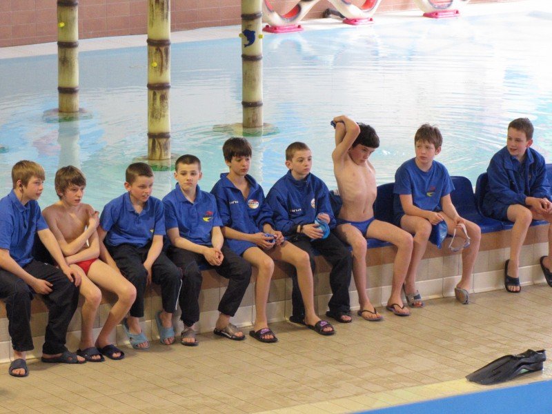 Po raz pierwszy na zawody wyjechali uczniowie I klas sportowych ze szkoły Podstawowej Nr 1. Trudno było liczyć na spektakularne sukcesy po pół roku nauki ale w tym przypadku nie to miało największe znaczenie. Uśmiechy na twarzach, poprawione czasy oraz nabranie pewności siebie było bezcenne. Najlepiej z pierwszoklasistów wypadła Magdalena Kłubko zajmując 6 miejsce na 25 metrów stylem grzbietowym(26.06). Jako jedyny na podium stanął Jan Wołoszyn, który był trzeci na 50 klasykiem(47.47). Tuż za podium uplasowały się obiecujące dziewczyny z rocznika 2001. Od piątego do siódmego miejsca na 50 dowolnym uplasowały się kolejno Róża Bździuch(40.24), Dominika Wlaź oraz Wiktoria Hałka(obydwie-41.15). Bardzo dobrze popłynął Adrian Misiarz poprawiając się znacznie na 100 klasykiem(1:18.34) oraz 400 dowolnym(4:53.65) jednak rywalizacja w kategorii OPEN nie pozwoliła mu na zajęcie dobrego miejsca.