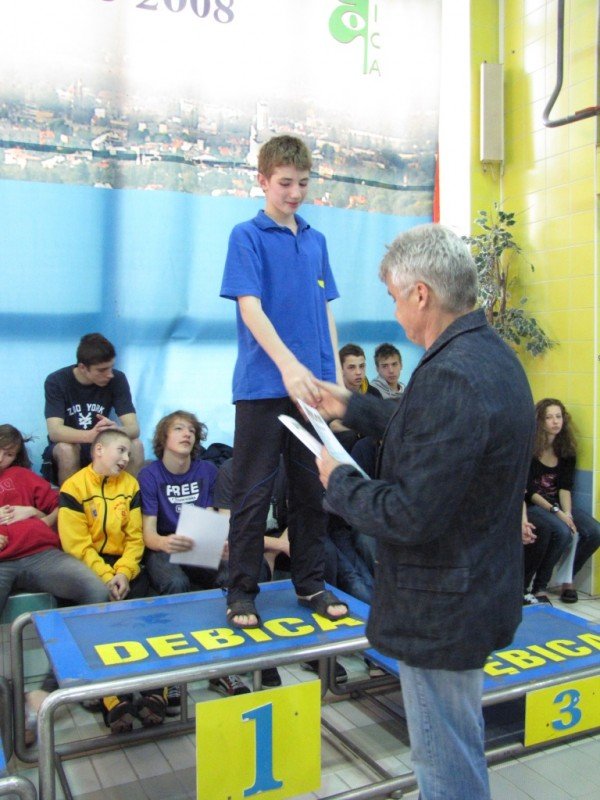 Najwięcej emocji przysporzyły zawody na 50 metrowej pływalni w Dębicy z pomiarem elektronicznym. Wiosenne Mistrzostwa Klubu Bobry Dębica przyciągają co roku mnóstwo uczestników i tak było tym razem. Łącznie wystartowało 328 zawodników z 38 klubów w tym kluby ze Słowacji i Ukrainy. Nas reprezentowała 9 osobowa drużyna. Wszystko to podnosi poziom zawodów i zdobyte miejsca „smakują” jeszcze bardziej. Świetnie zaprezentowała się nasza grzbiecistka Patrycja Kościk, która wygrała wszystkie swoje starty tym stylem(50, 100 i 200 metrów). Dużą niespodziankę sprawił Michał Pawęzka, który wygrał na 50 i 100 a na 200 metrów stylem grzbietowym był trzeci. Były to pierwsze zwycięstwa Michała jak do tej pory(„praca popłaca”). Nie zawiódł Adrian Misiarz, który wygrał 400 dowolnym i trzykrotnie stawał na najniższym miejscu podium. Należy również wyróżnić Rafała Konopkę za 3 miejsce na 50 metrów stylem klasycznym.