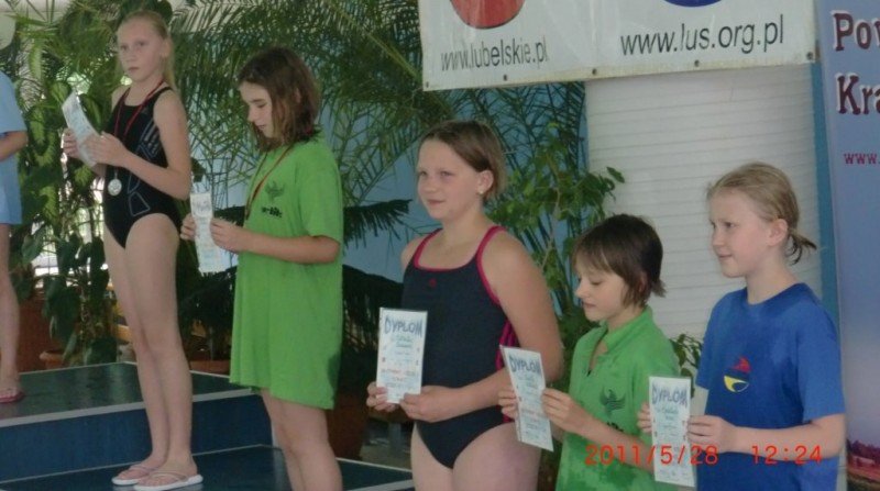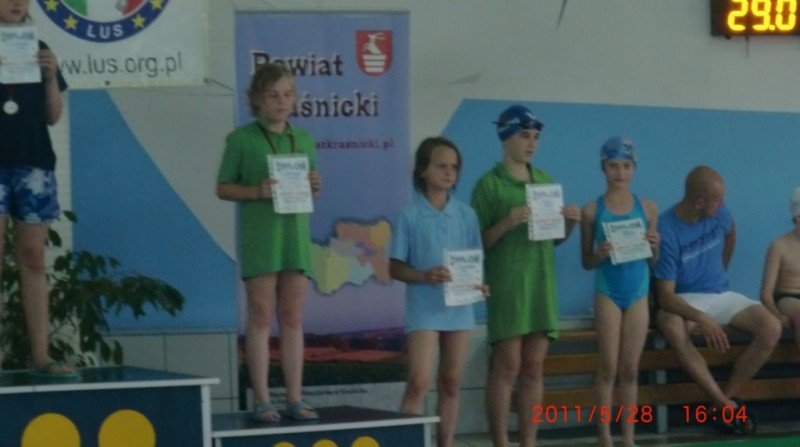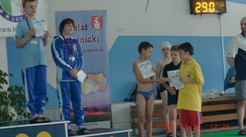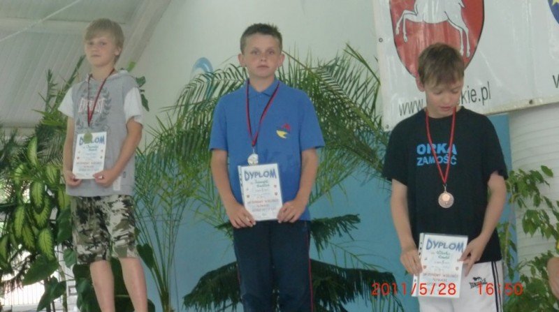 Wśród 11-latków świetnie spisał się Damian Zarzycki. Drużynowo jego rocznik zajął dopiero 6 miejsce, ale trzeba zaznaczyć, że skład drużyny uzupełniało tylko dwoje pływaków: Marcelina Struk i Janek Wołoszyn. Na cztery starty Damian wygrał 200 metrów stylem dowolnym(1:28.78) oraz trzykrotnie stawał na drugim miejscu podium na 100 grzbietem(1:16.78), 100 dowolnym(1:08.13), 200 zmiennym(2:50.24). Pierwsze trzy wyniki plasują się w pierwszej piątce najlepszych w kraju w tej kategorii wiekowej. Czekamy na końcowe zestawienie wyników z całego kraju.