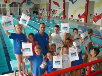 2010-05-09 III RUNDA LUBELSKIEGO KOZIOĆKA W III ostatniej przed wakacjami rundzie zawodĂłw pĆywackich o Laur Lubelskiego KozioĆka w Lublinie wystartowaĆa liczna 37 osobowa reprezentacja naszego regionu. W zawodach wystartowaĆo prawie 220 zawodnikĂłw i zawodniczek wojewĂłdztwa lubelskiego. Bardzo dobrze zaprezentowali siÄ najmĆodsi reprezentanci. MĆodzi adepci pĆywania pojechali do Lublina zdobywaÄ doĆwiadczenie na zawodach rangi wojewĂłdzkiej. Niespodziewanie Kacper Szewc i Krzysztof Antosz zajÄli bardzo wysokie 4 miejsca w swoich kategoriach wiekowych. Kacper udanie startowaĆ stylem klasycznym osiÄ gajÄ c czas 26.24 sekundy natomiast Krzysio 21.56 stylem dowolnym obaj na dystansie 25 metrĂłw.